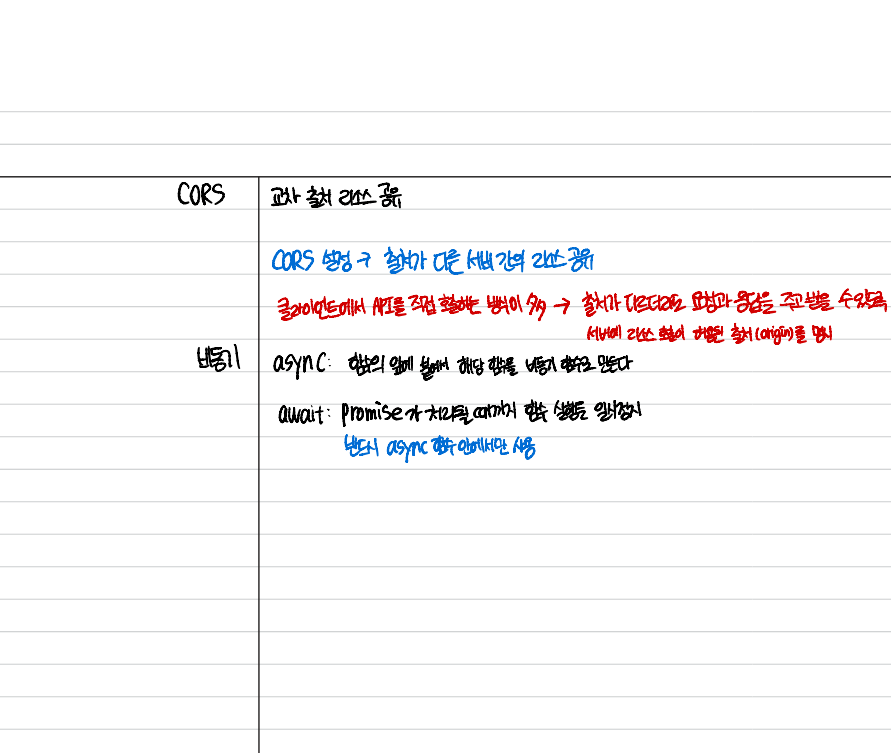 - CORS를 설정한다는 건 ‘출처가 다른 서버 간의 리소스 공유’를 허용한다는 뜻