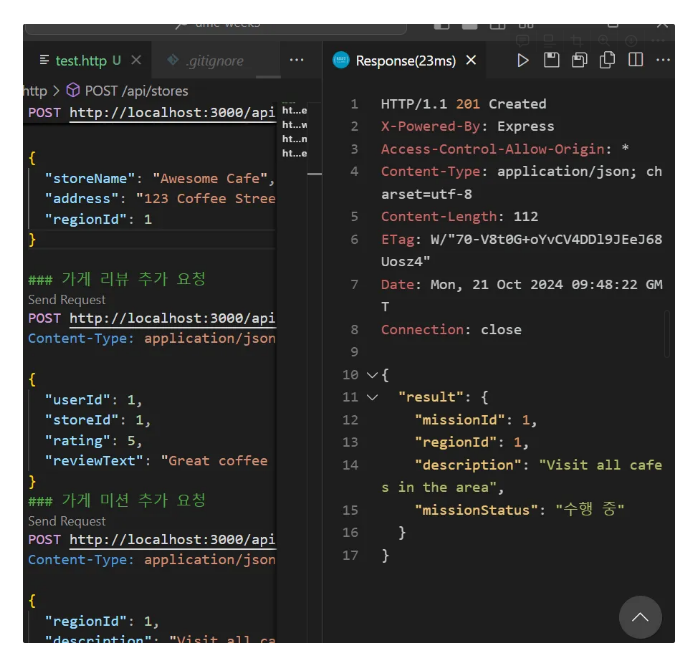 또한 API 설계 후 직접 리퀘스트를 보내 API 리스폰스가 잘 작동하는 지 확인하면서 점검까지 해보는 경험을 해보면서 api 설계에 대한 지식을 쌓을 수 있어서 좋았습니다.