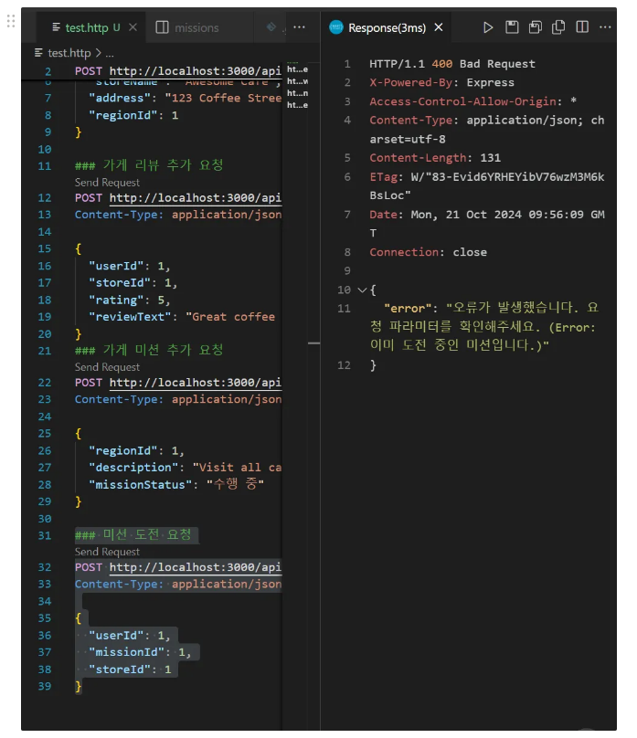"error": "오류가 발생했습니다. 요청 파라미터를 확인해주세요. (Error: 이미 도전 중인 미션입니다.)"