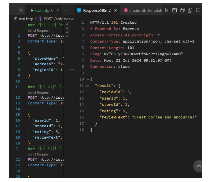 - test.http는 리퀘스트를 보내고 확인할 용도의 파일입니다.