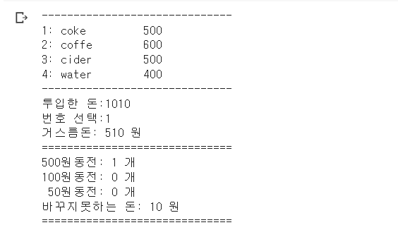 money=int(input('투입한 돈:'))