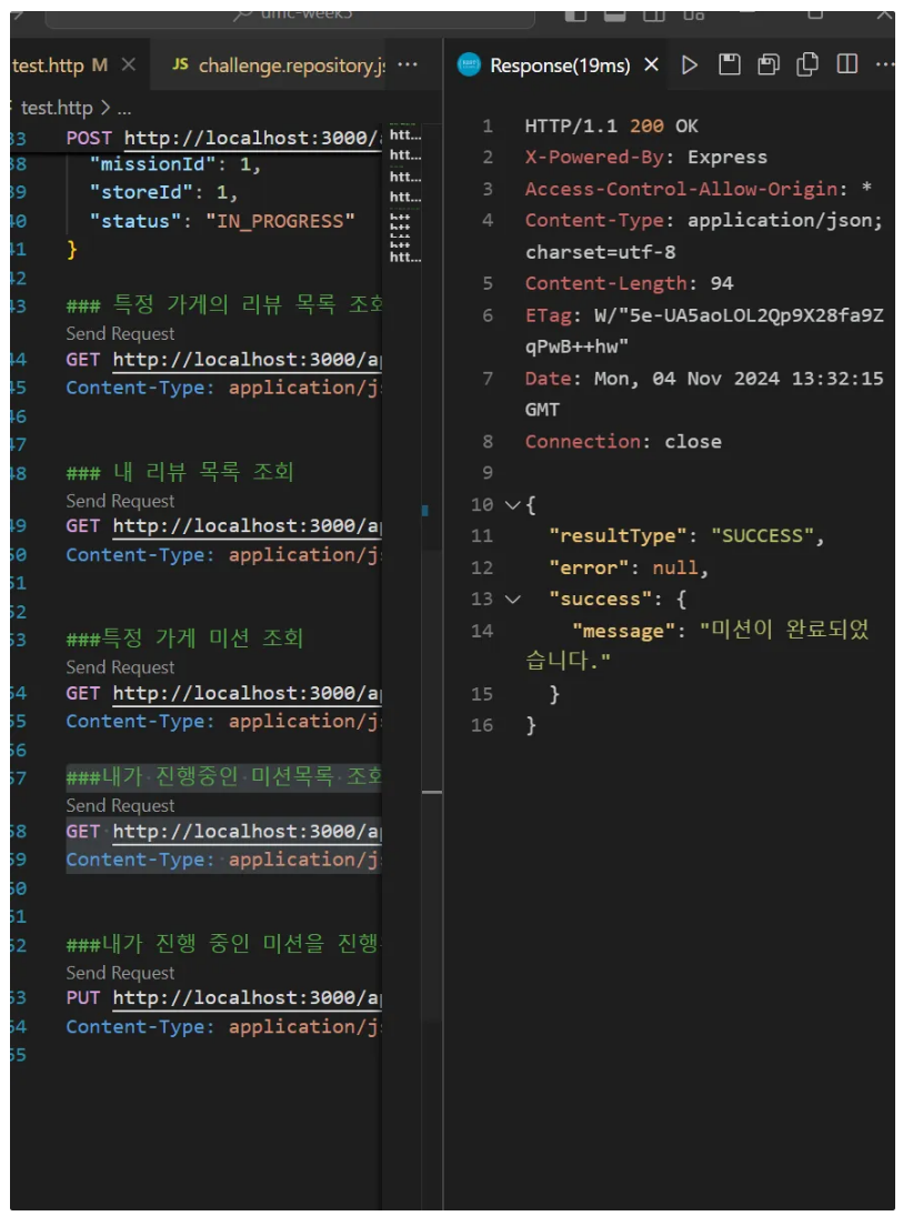 // 특정 사용자의 진행 중인 미션 완료로 업데이트 API