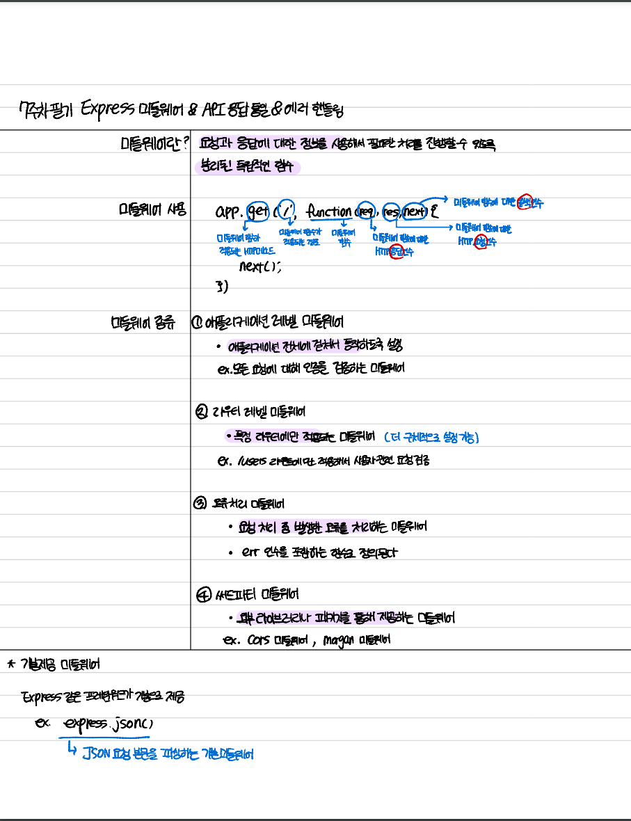 - 즉 next()는 미들웨어에서 요청 흐름을 이어가기 위해 필수적이다.