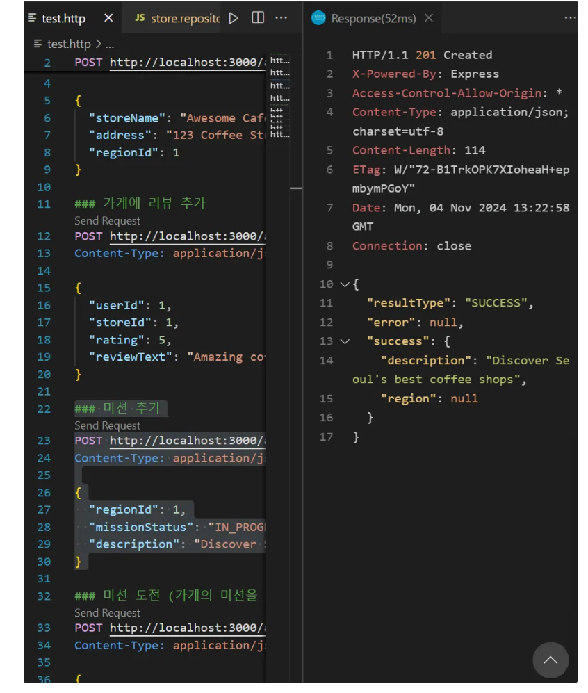 **throw new StoreNotFoundError("리뷰를 추가할 가게가 존재하지 않습니다.", { storeId: data.storeId });**