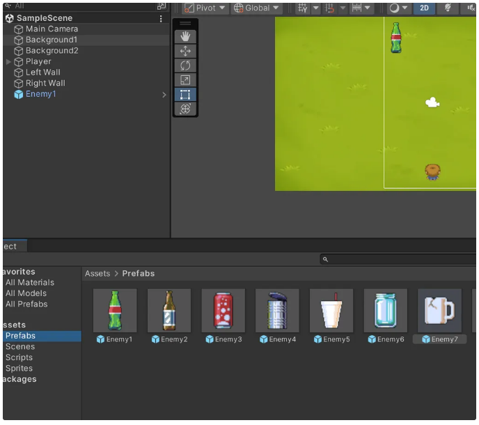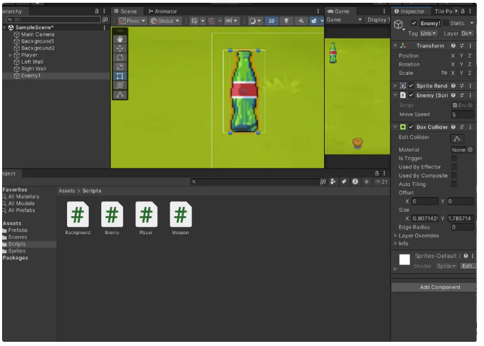 - Enemy는 바깥쪽에서 밑으로 쭉 떨어지는 동작을 정의하면 된다.