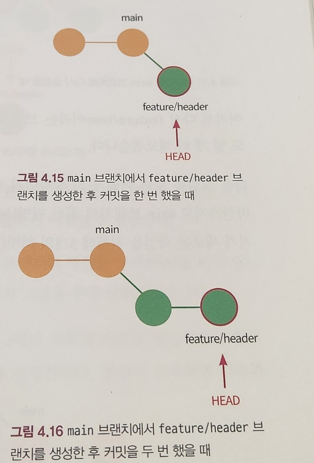 다음과 같이 HEAD가 master가 아닌 feature/header를 가리키는 것을 확인할 수 있습니다.