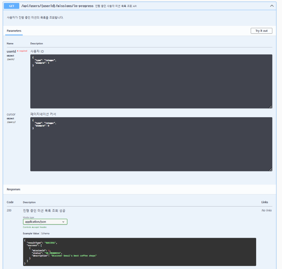 description: { type: "string", description: "미션 설명", example: "Discover Seoul's best coffee shops" }