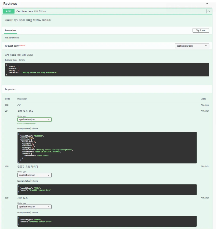 // 가게 리뷰 추가 API