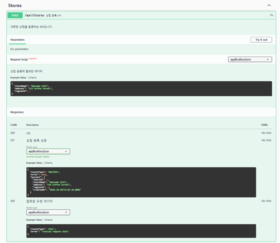 storeId: { type: "integer", description: "상점 ID", example: 1 },