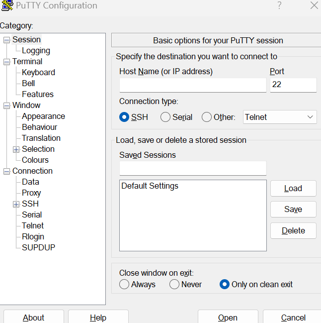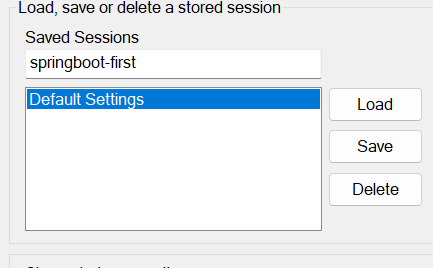 Session 탭으로 이동해서 saved sessions에 현재 설정을 저장할 이름을 등록하고 저장한다