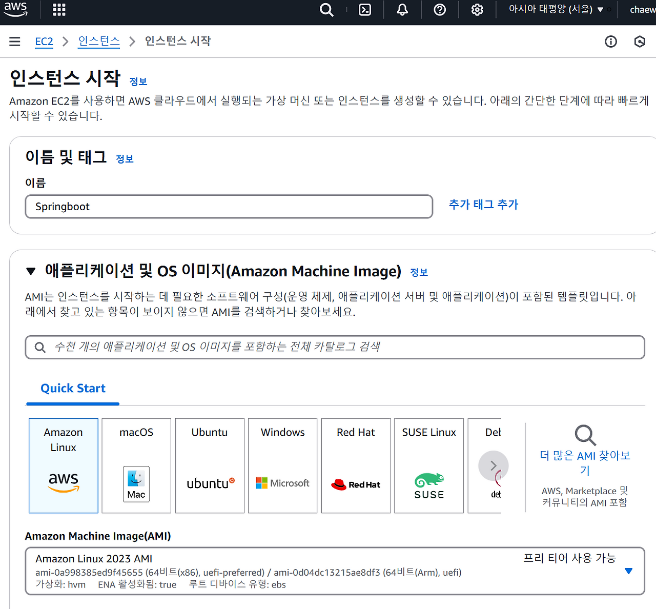 - 인스턴스를 생성하는 첫단계는 AMI를 선택하는 것