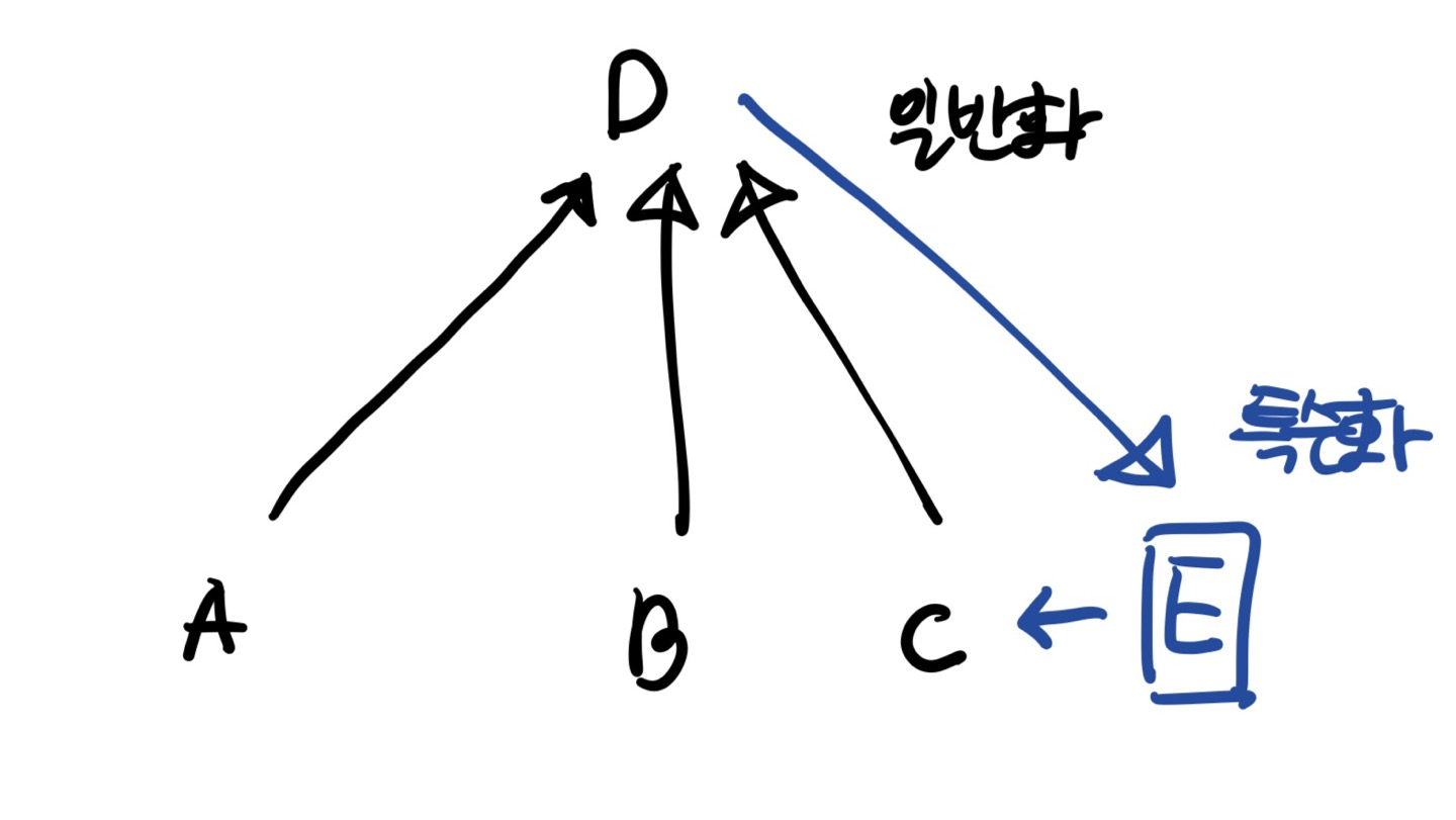 UML에서 일반화는 삼각형 화살표로 표현됨 (하위 → 상위)