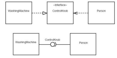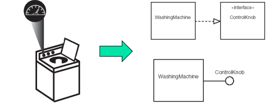 - WashinMachine은 ControlKnob 인터페이스 클래스의 구현을, Person은 ControlKnob 인터페이스의 사용을 표현함