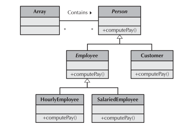 - 예를 들어, 아래의 경우 Employee, Customer 모두 computePay() 메소드를 갖지만 Customer의 메소드가Employee와는 전혀 다른 계산방식을 가질 경우 의미적인 일관성(semantically consistent) 문제를 발생시킨다