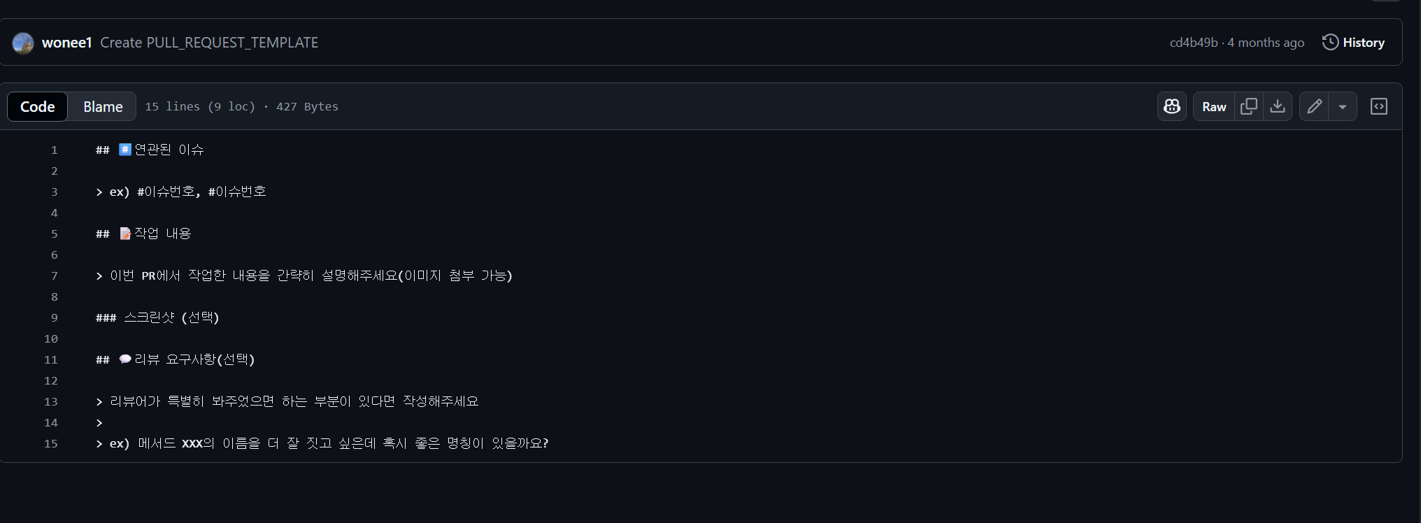 2. 풀리퀘스트(PR) 템플릿 생성