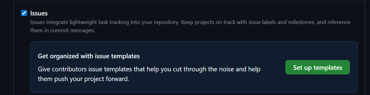 레포지토리 > Settings > General > Issues 하위의 Set up templates 클릭한다.