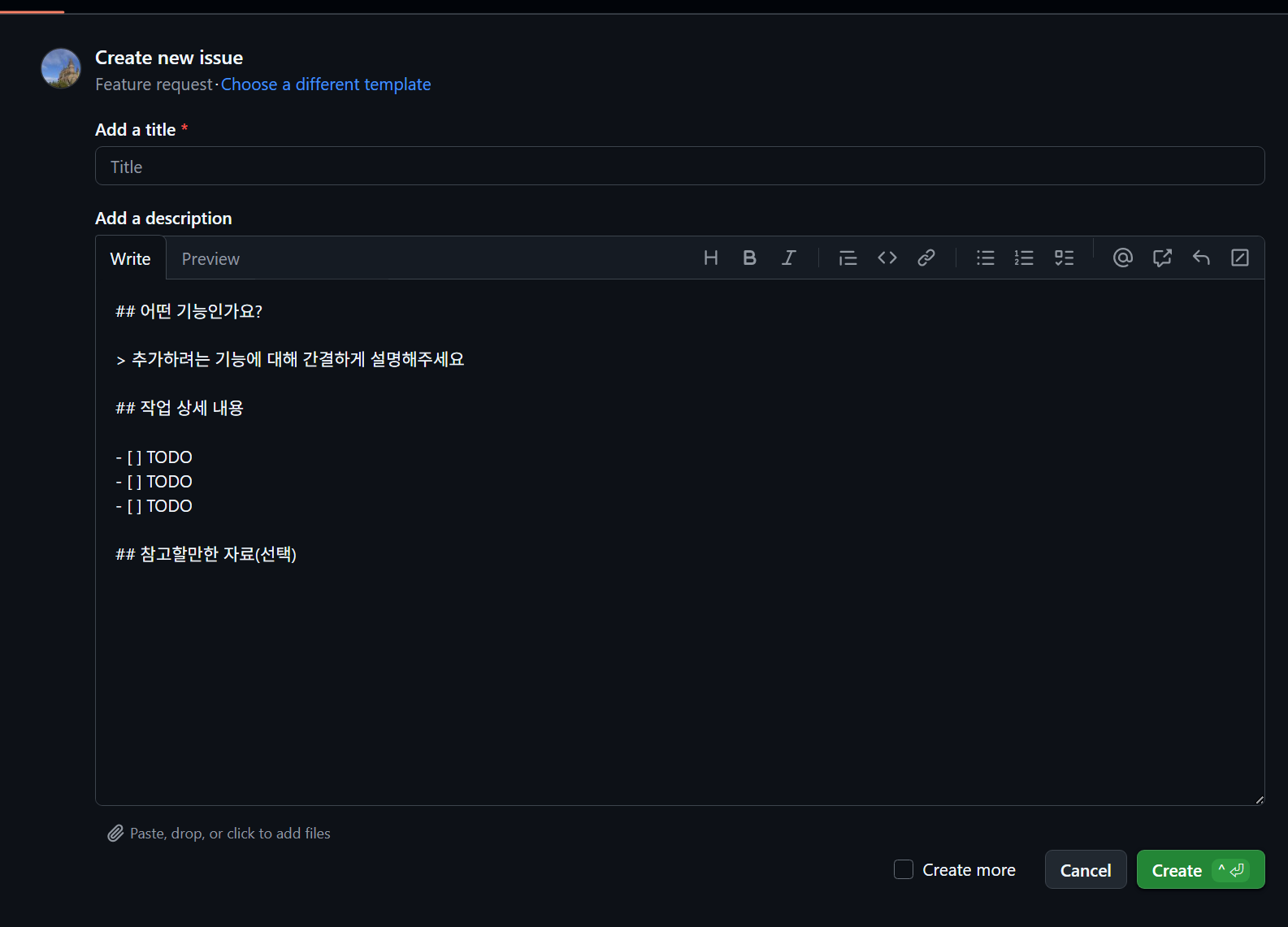⭐ 이슈 템플릿 생성 방법 <2>