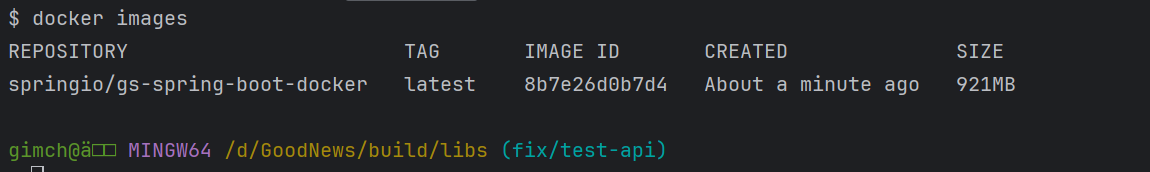 docker images 명령어로 확인하면 다음과 같이 도커 이미지를 확인할 수 있습니다.