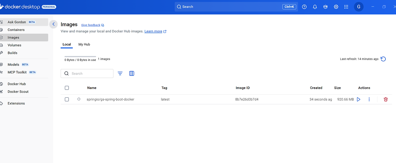 - Spring Boot 기본 포트가 8080이므로 -p 8080:8080 사용