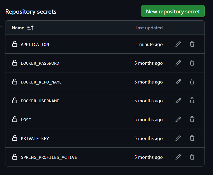 - HOST와 PRIVATE_KEY는 배포 자동화를 위해 ssh 접속에 사용됩니다.