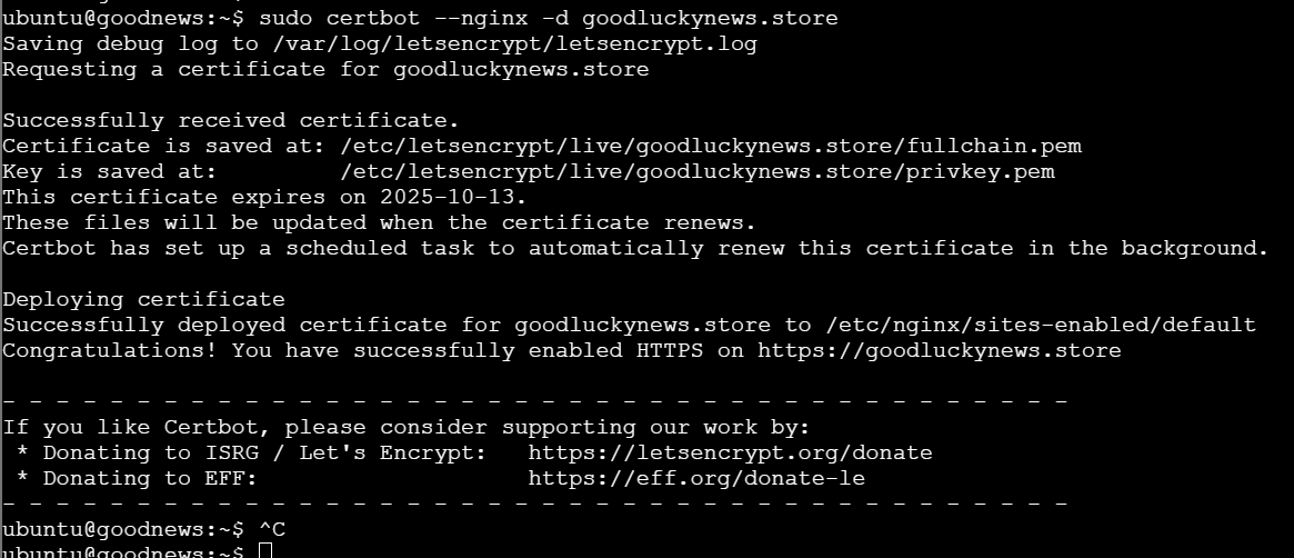 ssl_certificate_key /etc/letsencrypt/live/goodluckynews.store/privkey.pem; # managed by Certbot