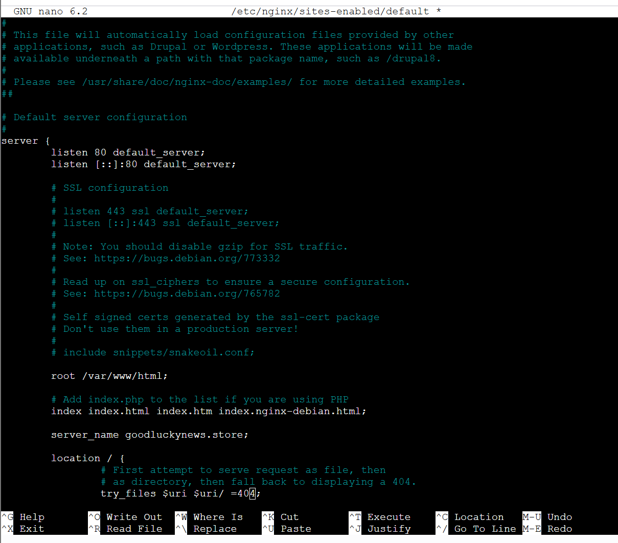 ssl_certificate_key /etc/letsencrypt/live/goodluckynews.store/privkey.pem; # managed by Certbot