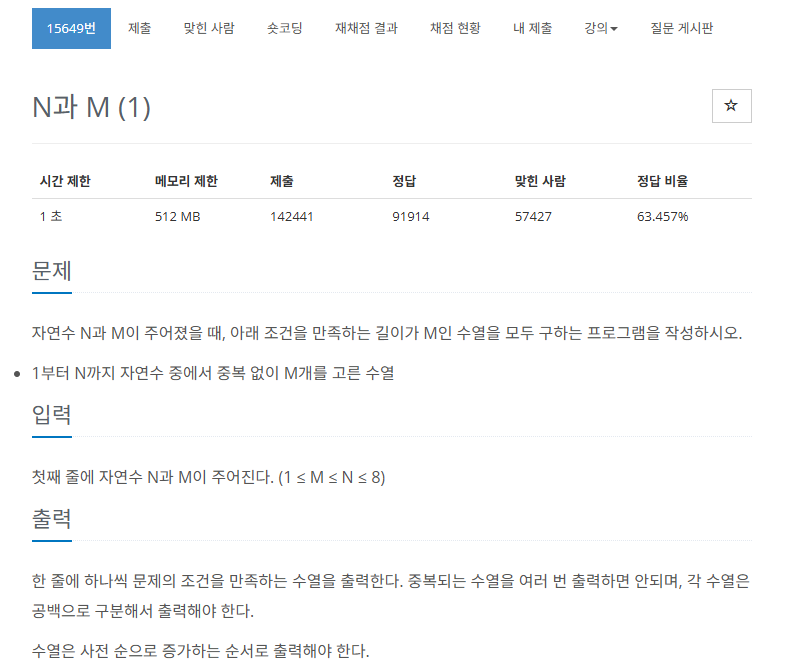 - 또한 수열은 사전 순으로 증가하는 순서, 즉 오름차순으로 정렬하여서 출력해야한다.