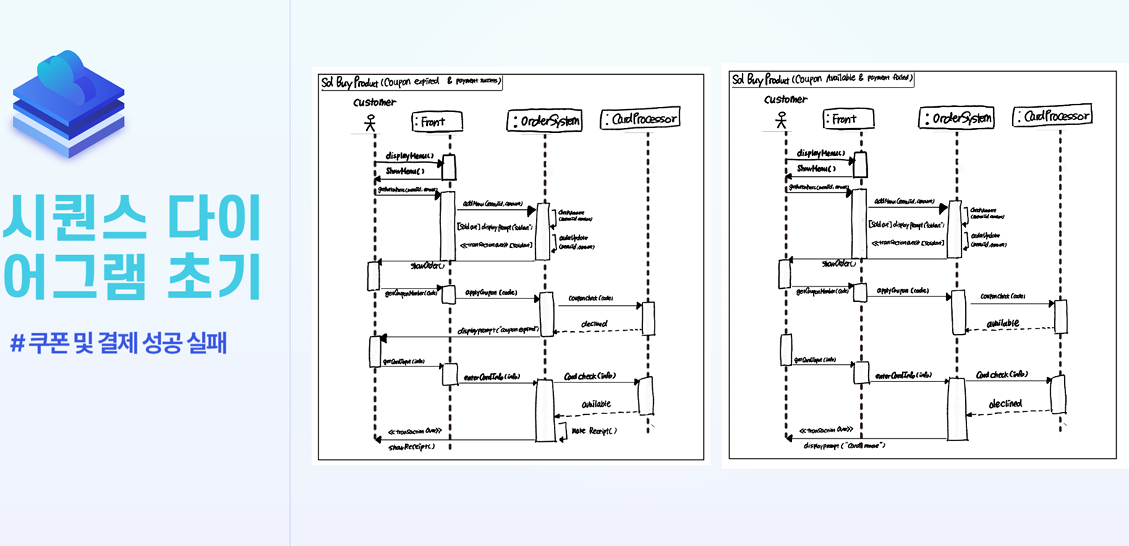 초기 시퀀스 다이어그램은 쿠폰 및 결제 성공 실패로 진행했습니다.