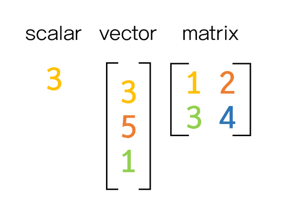 - 스칼라(scalar): 크기만 있는 수 (예: 온도 25℃, 질량 10kg)