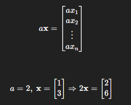 벡터의 각 성분에 스칼라 a를 곱한다.