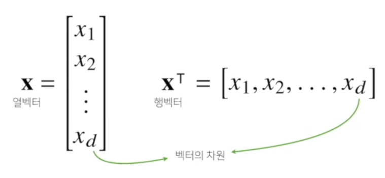 - 열벡터: 원소의 배열이 세로로 되어있는 벡터.