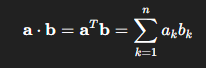 내적(Dot Product, 혹은 Scalar Product)은 다음과 같이 정의된다.