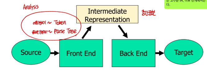 | Back-end | 코드 최적화, 코드 생성, 기계 의존적 최적화 | 효율적인 기계어 코드 생성 | Target Machine Code |