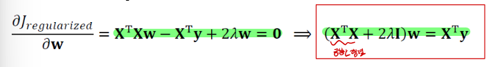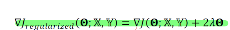 이러한 규제항 목적함수를 미분하면 다음과 같은 식이 만들어진다.