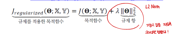 => 가중치 값을 크지 않게 규제한다.