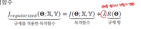 규제항 R : 훈련집합과 무관하며 단지 매개변수의 크기에 제약을 가하는 역할만 수행한다.