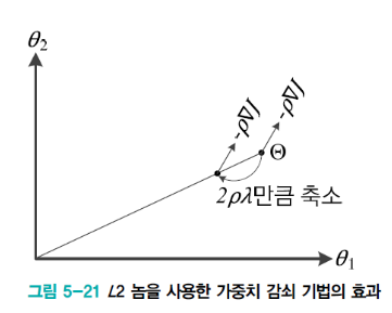 이때 𝜆 = 0으로 두면 규제 적용이 안된다. 즉 표준 경사하강법이 적용된다