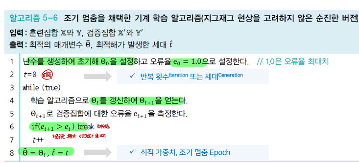 따라서 검증 집합의 오류가 최저인 점에서 학습을 멈추는 것이 조기 멈춤 기법이다.