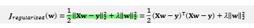 이때 가중치 감쇠를 선형회귀에 적용하면 다음과 같은 목적함수가 만들어진다