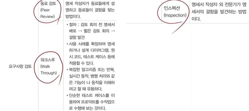 - 동료검토 : 작성자가 명세서 내용을 직접 설명하면서 결함을 발견함
