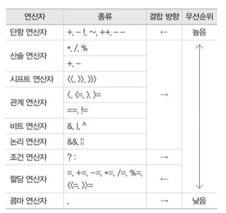 JAVA 연산자의 종류 및 우선순위