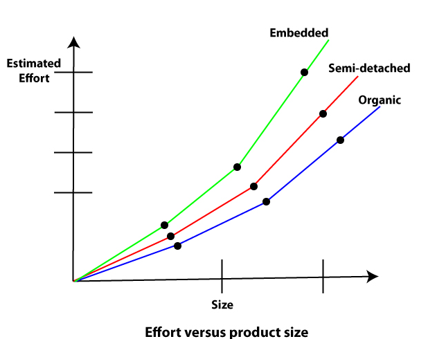 - 보헴(Boehm)이 제안한 소스코드 (Source Code)의 규모에 의한 비용 예측 모델이다