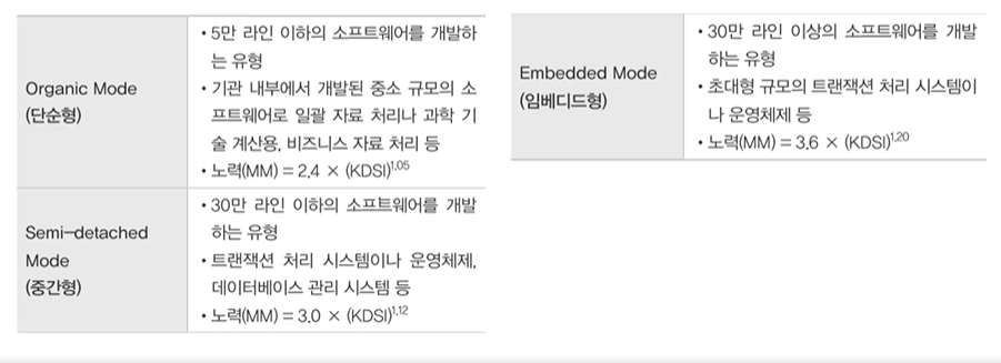 - 같은 규모의 소프트웨어라도 그 유형에 따라 비용이 다르게 산정된다
