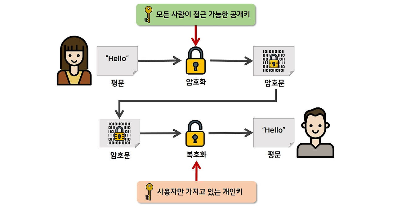 - 비대칭키 암호화 기법 또는 공중키 암호화 기법이라고도 한다