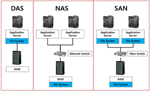 - 저장 장치와 호스트 기기사이에 네트워크 디바이스없이 직접 연결하는 방식으로 구성된다