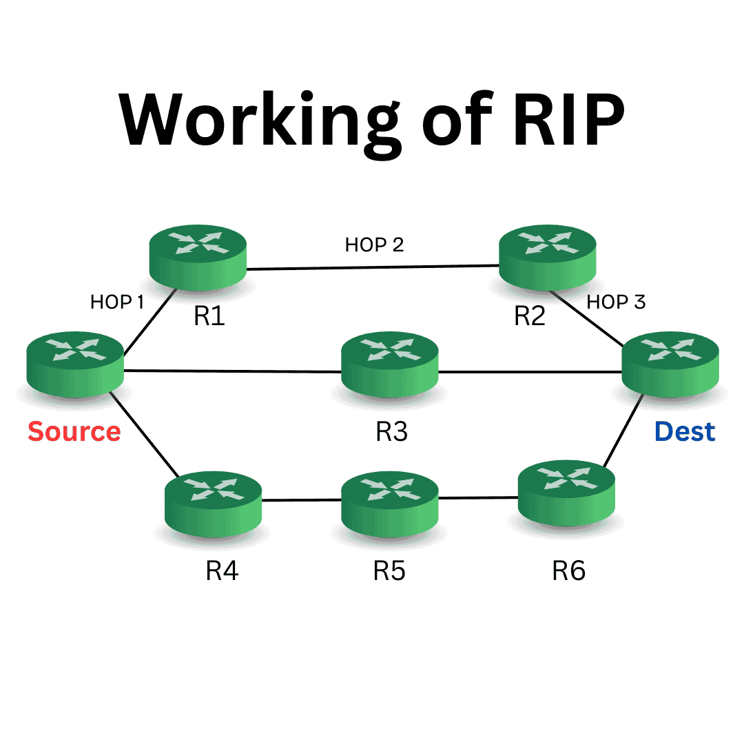 - 홉 수를 기반으로 최단 경로를 찾아내는 거리 벡터 라우팅 프로토콜이다.