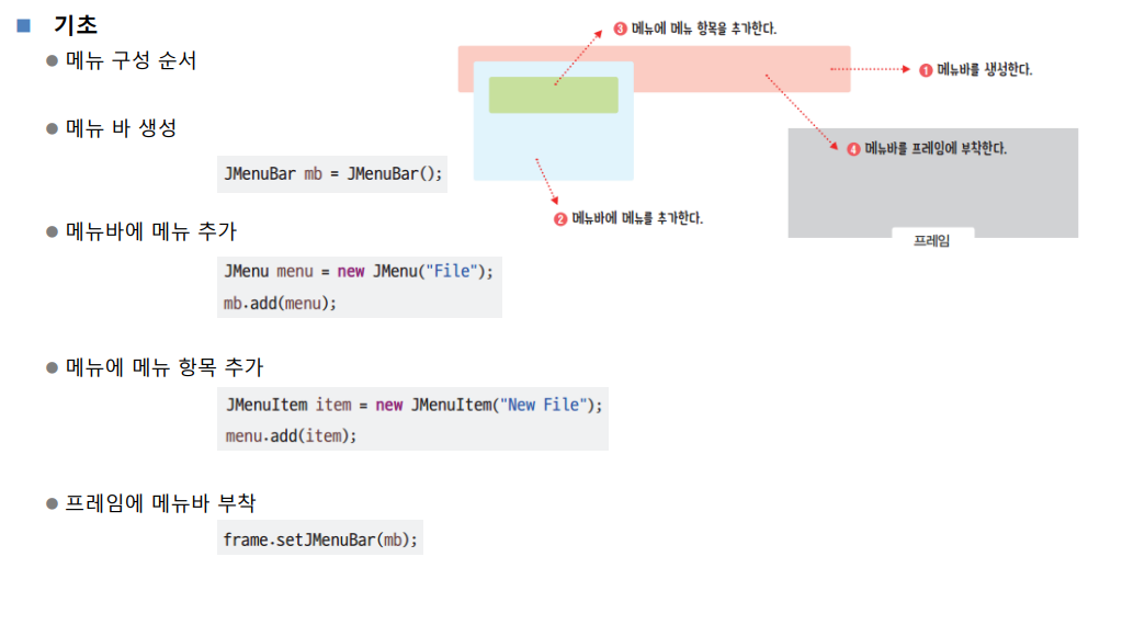m1.setMnemonic(KeyEvent.VK_F);// 단축키 ALT+F