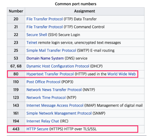- http 프로토콜로 통신하는 서버 프로그램은 포트 번호 80번을,