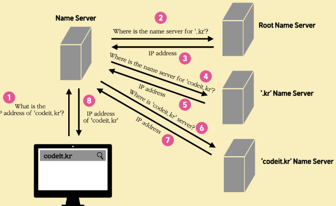 이미 한번 codeit.kr의 IP 주소를 받은 후에는 제 컴퓨터의 OS가 그 IP 주소를 보통 별도로 저장해두고 계속 사용