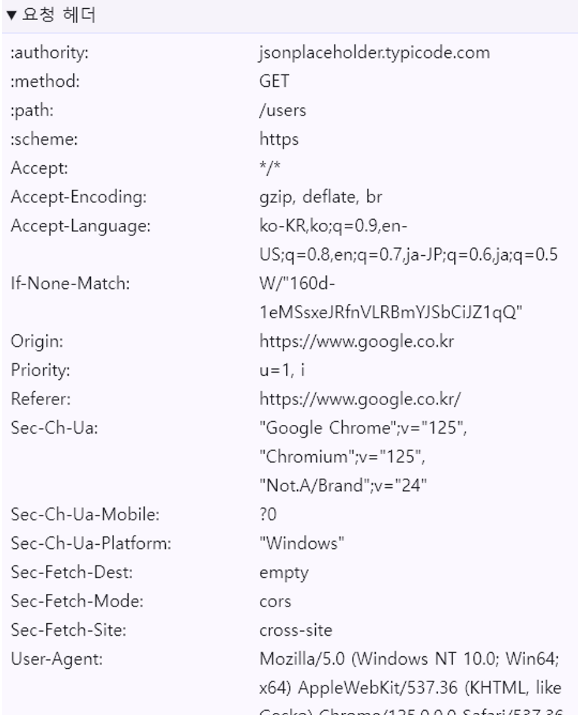 • fetch함수는 아무런 설정을 하지 않으면 기본적으로 GET Request를 보내도록 되어있다